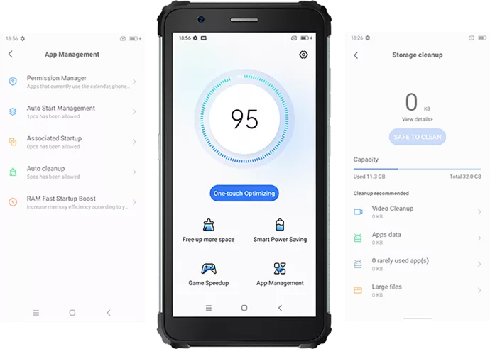 Полный контроль: удаление мусорных файлов, управление аккумулятором, игровой режим, фоновая работа приложений.