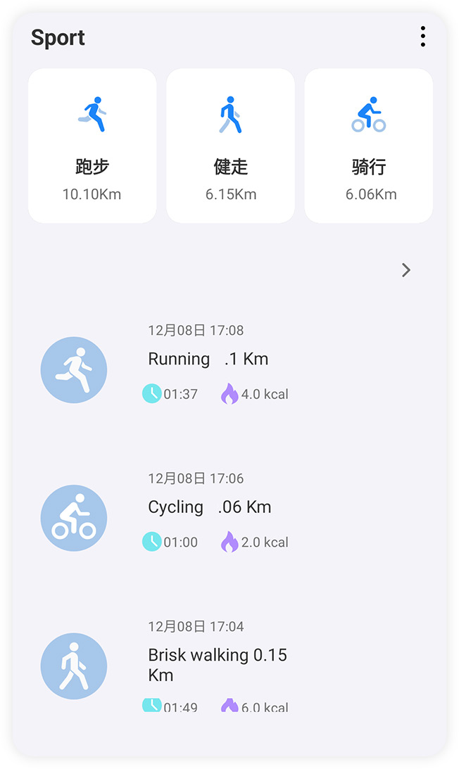 В приложении Health сохраняется информация о шагах, калориях, длительности, дистанции, нагрузке.